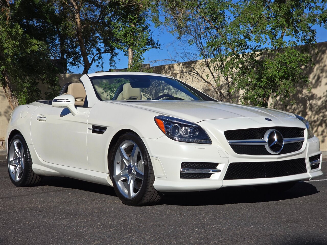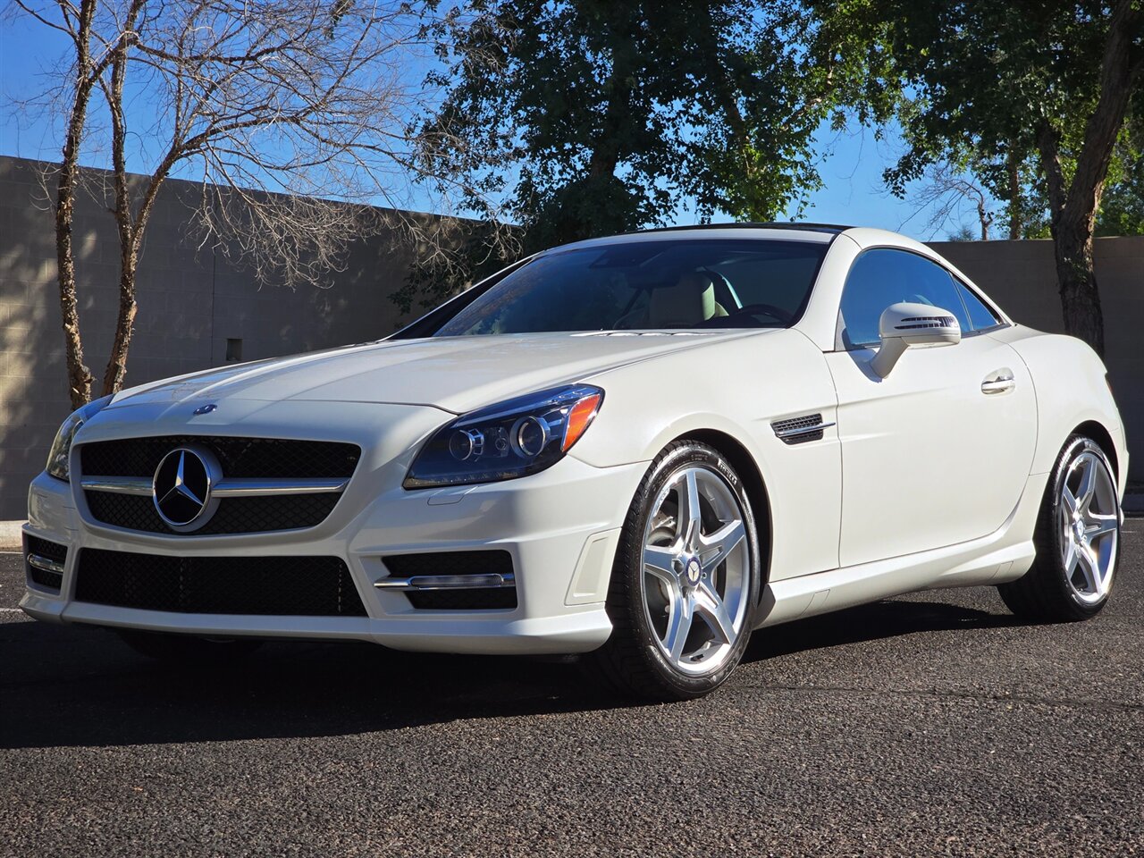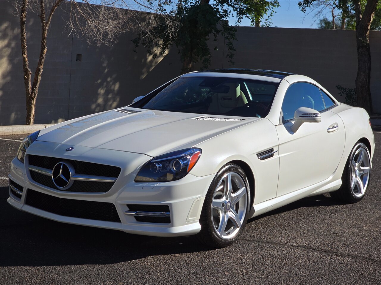 STUNNING! 2013 MERCEDES-BENZ SLK 350!... JUST 42K MILES! 2-OWNER W/ EXCELLENT SERVICE HISTORY!! FINANCING AVAILABLE!!!... NO HAGGLE PRICING...LEATHER AND LOADED!...DESIGNO DIAMOND WHITE EXTERIOR W/ SAHARA BEIGE LEATHER INTERIOR... AMG SPORT PKG... NAVIGATION & BLUETOOTH... LIGHTING PKG ~ BI-XENON ADAPTIVE LIGHT W/ ACTIVE CURVE... TRIM PKG ~WOOD/LEATHER STEERING WHEEL & KNOB, BURL WALNUT TRIM... MULTIMEDIA PKG... GLASS PANORAMA ROOF W/ FIXED TINT... KEYLESSS GO... ANALOG DASH CLOCK... HEATED SEATS & AIR SCARF... HARMON/KARDON SOUND & MORE!...LOOKS & DRIVES LIKE A DREAM!...INSPECTED, SERVICED & 100% READY TO GO!!... ***WE SHIP TO ALL 50 STATES!!!*** AVAILABLE ANYTIME BY APPOINTMENT! CALL/TEXT NOW TO SCHEDULE A VIEWING OF THIS VEHICLE IN OUR AIR-COOLED INDOOR FACILITY - (480) 680-7090