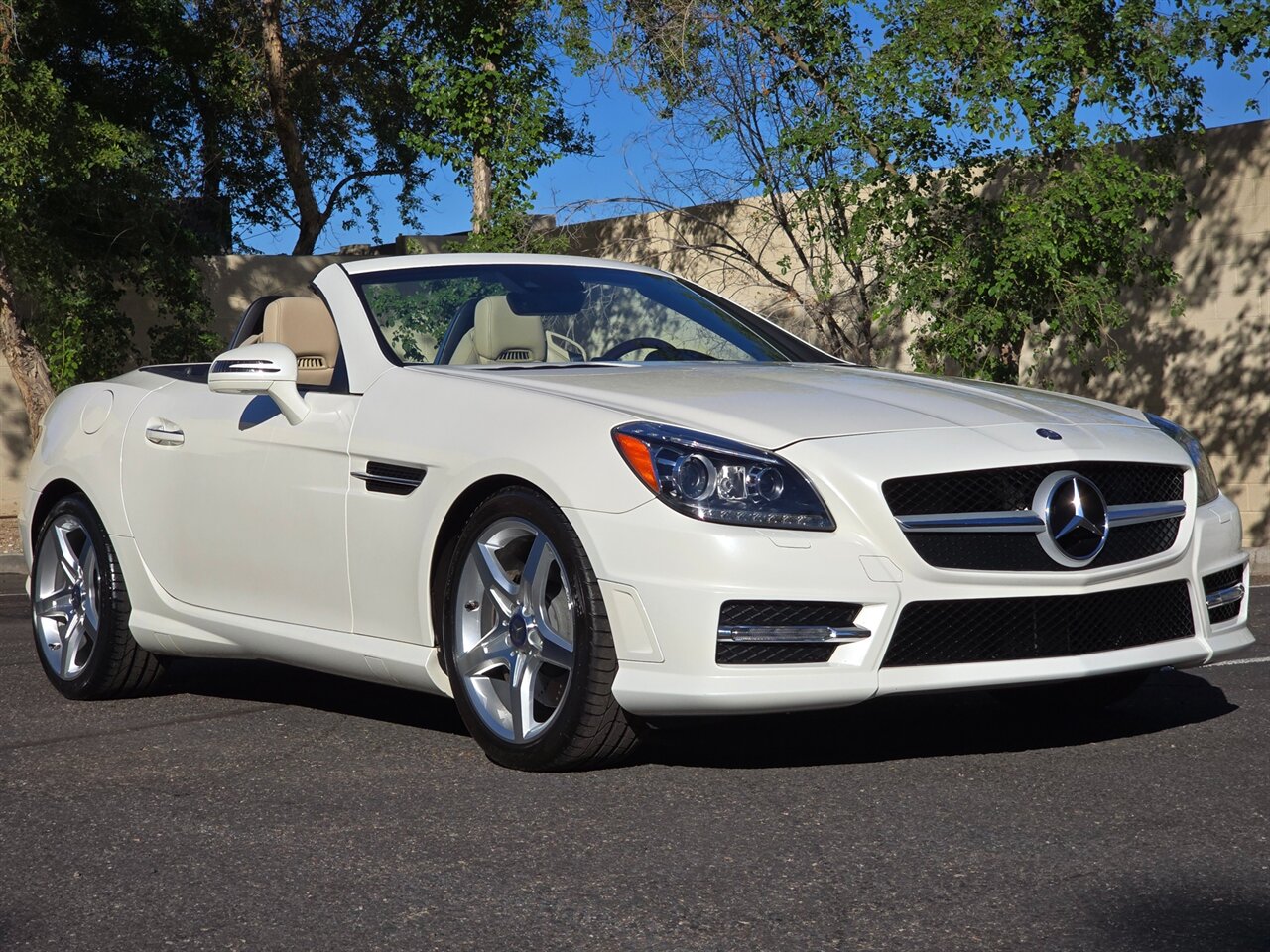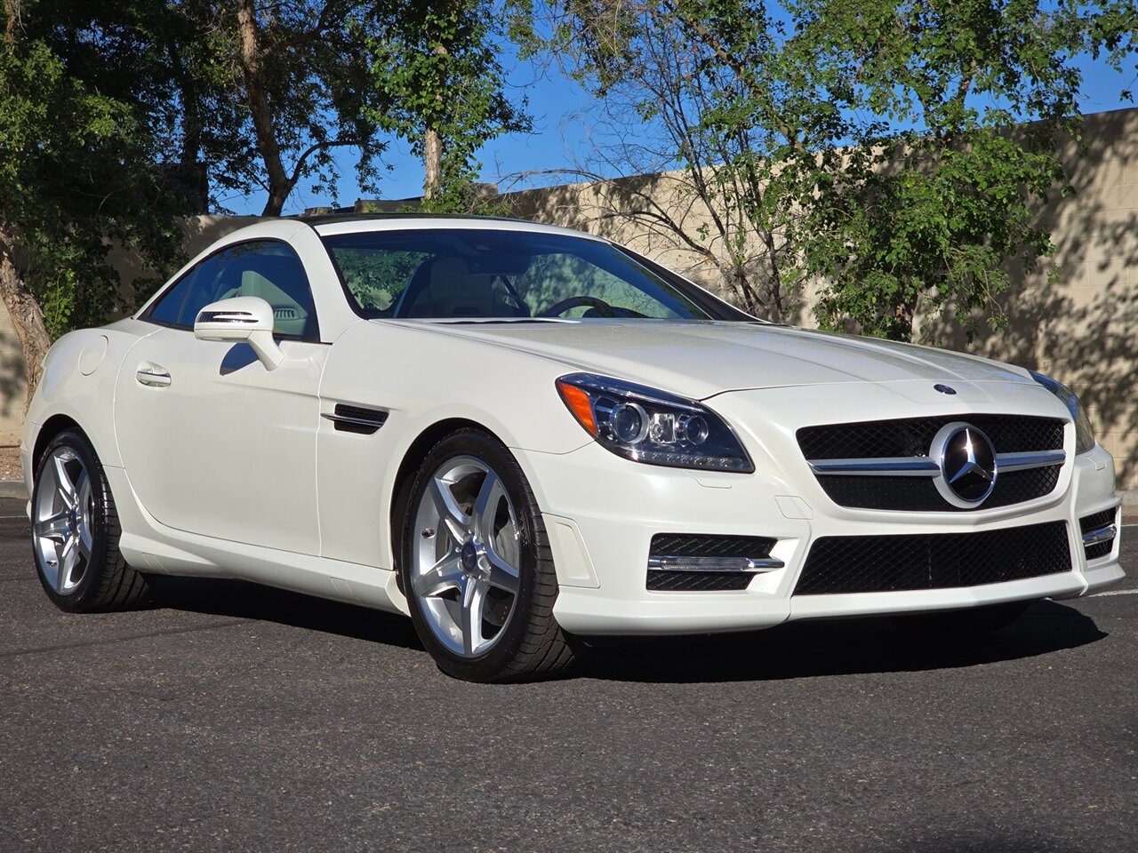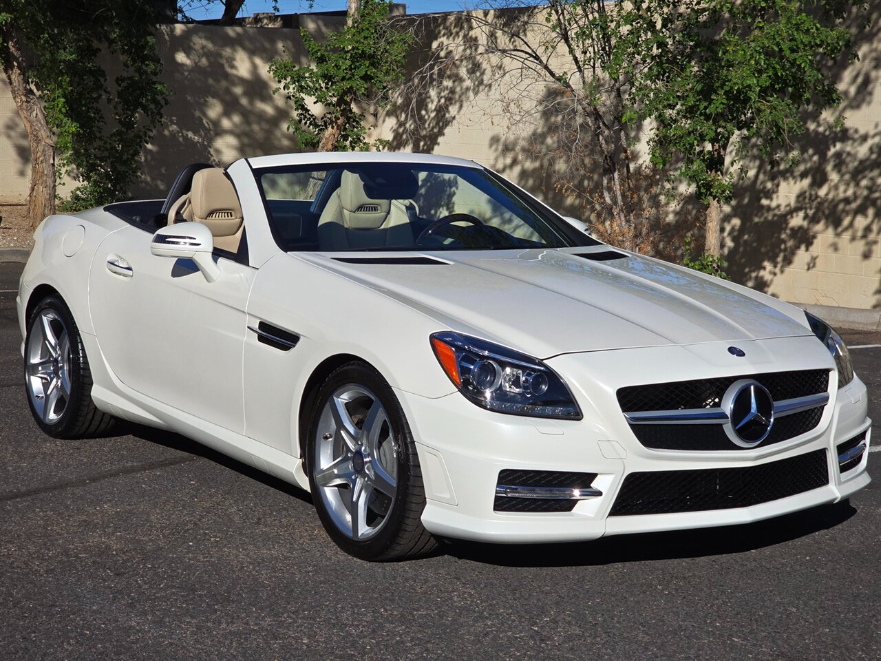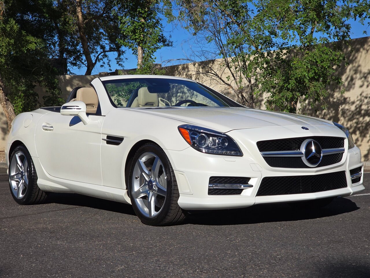 STUNNING! 2013 MERCEDES-BENZ SLK 350!... JUST 42K MILES! 2-OWNER W/ EXCELLENT SERVICE HISTORY!! FINANCING AVAILABLE!!!... NO HAGGLE PRICING...LEATHER AND LOADED!...DESIGNO DIAMOND WHITE EXTERIOR W/ SAHARA BEIGE LEATHER INTERIOR... AMG SPORT PKG... NAVIGATION & BLUETOOTH... LIGHTING PKG ~ BI-XENON ADAPTIVE LIGHT W/ ACTIVE CURVE... TRIM PKG ~WOOD/LEATHER STEERING WHEEL & KNOB, BURL WALNUT TRIM... MULTIMEDIA PKG... GLASS PANORAMA ROOF W/ FIXED TINT... KEYLESSS GO... ANALOG DASH CLOCK... HEATED SEATS & AIR SCARF... HARMON/KARDON SOUND & MORE!...LOOKS & DRIVES LIKE A DREAM!...INSPECTED, SERVICED & 100% READY TO GO!!... ***WE SHIP TO ALL 50 STATES!!!*** AVAILABLE ANYTIME BY APPOINTMENT! CALL/TEXT NOW TO SCHEDULE A VIEWING OF THIS VEHICLE IN OUR AIR-COOLED INDOOR FACILITY - (480) 680-7090