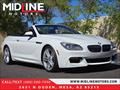 GORGEOUS! 2015 BMW 640I CONVERTIBLE M SPORT! JUST 50K MILES! FINANCING AVAILABLE!!!... CALIFORNIA VEHICLE W/ EXCELLENT SERVICE HISTORY!... NO HAGGLE PRICING...LEATHER AND LOADED!... ALPINE WHITE PAINT W/ BLACK NAPPA LEATHER INTERIOR... M SPORT PKG... MULTI CONTOUR SEATS... BLACK PERFORATED NAPPA LEATHER INTERIOR...20" M SPORT WHEELS... ENHANCED USB & BLUETOOTH W/ SMARTPHONE INTEGRATION... LEATHER INSTRUMENT PANEL & MORE!...INSPECTED & 100% READY TO GO!!...***WE SHIP TO ALL 50 STATES!!!*** AVAILABLE ANYTIME BY APPOINTMENT! CALL/TEXT NOW TO SCHEDULE A VIEWING OF THIS VEHICLE IN OUR AIR-COOLED INDOOR FACILITY - (480) 680-7090