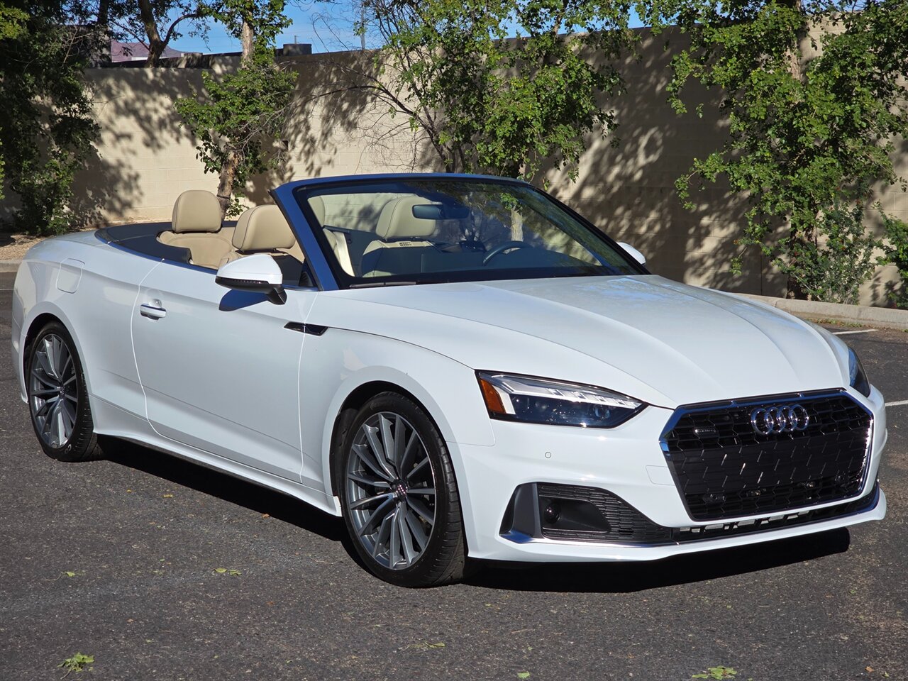 LIKE BRAND NEW! 2020 AUDI A5 CABRIOLET PREMIUM PLUS 2.0 TFSI QUATTRO!... JUST 16K MILES!... 1-OWNER, CLEAN CARFAX, WITH PERFECT MAINTENANCE HISTORY!!... FINANCING AVAILABLE!!!..NO HAGGLE PRICING...LEATHER AND FULLY LOADED!... GLACIER WHITE METALLIC W/ ATLAS BEIGE PREMIUM LEATHER INTERIOR... PREMIUM PLUS~ MATRIX LED HEADLIGHTS, ALARM SYSTEM, KEYLESS ENTRY/START, XM RADIO, PARKING SYSTEM PLUS W/ AUDI SIDE ASSIST AND PRE SENSE REAR... NAVIGATION PKG... DRIVER ASSISTANCE PKG~ ADAPTIVE CRUISE CONTROL W/ TRAFFIC JAM ASSIST, AUDI ACTIVE LANE ASSIST... BANG & OLUFSEN 3D SOUND SYSTEM... LUXURY PKG ~ VENTILATED FRONT SEATS, HEATED STEERING, NECK-LEVEL HEATING SYSTEM, FRONT SPORT SEATS, 4 WAY POWER LUMBAR... 19" MULTISPOKE DESIGN WHEELS & MORE!!... INSPECTED & 100% READY TO GO!!.... ***WE SHIP TO ALL 50 STATES!!!*** INCLUDES 2 SETS OF KEYS, BOOKS, AND ORIGINAL FLOOR MATS!... AVAILABLE ANYTIME BY APPOINTMENT! CALL/TEXT NOW TO SCHEDULE A VIEWING OF THIS VEHICLE IN OUR AIR-COOLED INDOOR FACILITY - (480) 680-7090
