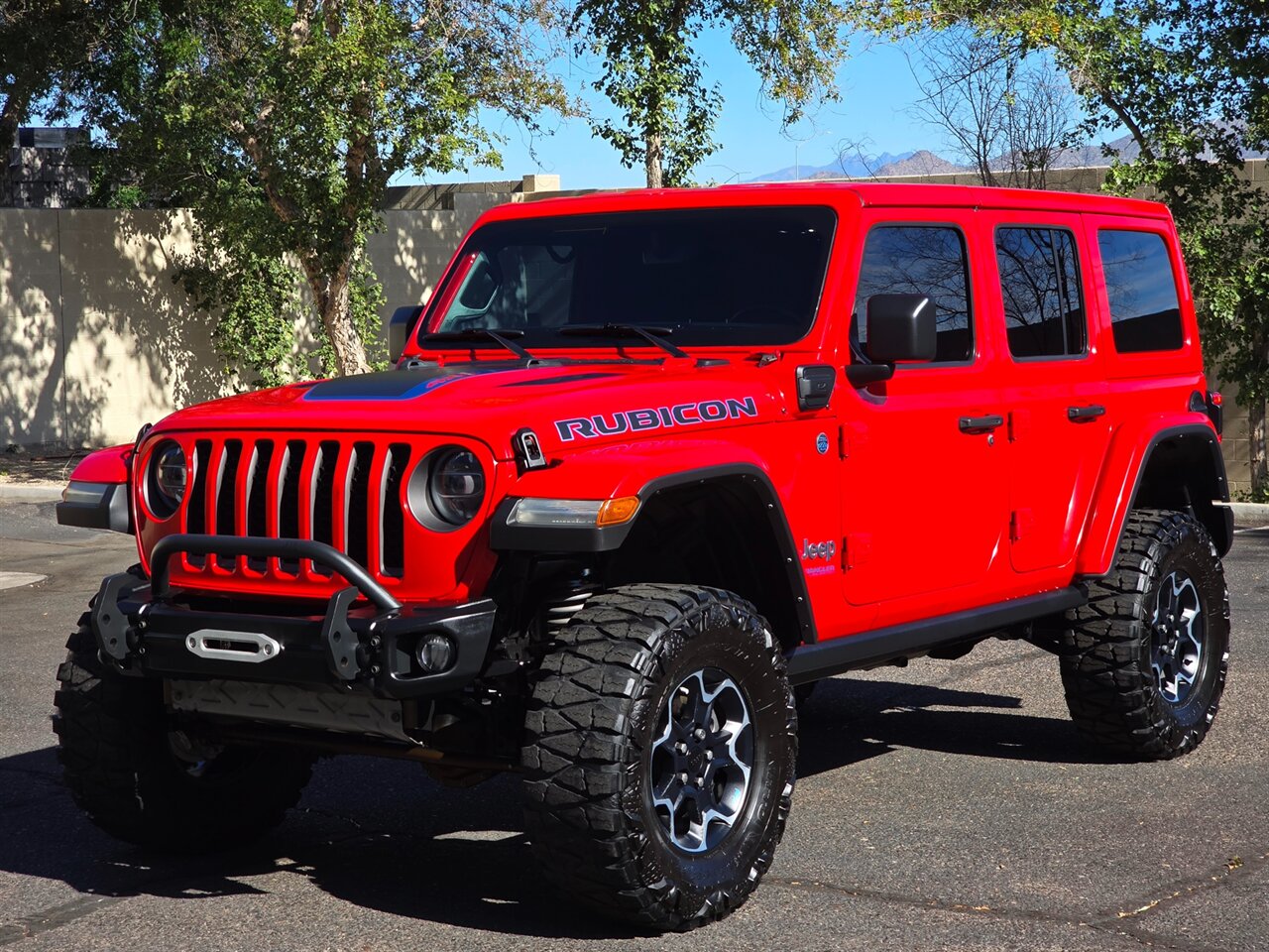 IMMACULATE! 2022 JEEP WRANGLER UNLIMITED RUBICON 4XE!... JUST 39K MILES!... 1-OWNER, CLEAN CARFAX, WEST COAST VEHICLE!!.. FINANCING AVAILABLE!!!..NO HAGGLE PRICING...LEATHER AND LOADED!...FIRECRACK RED PAINT W/ BLACK LEATHER INTERIOR... NAVIGATION/CAPRLAY & BLUETOOTH... LEATHER TRIMMED BUCKET SEATS W/ PREMIUM WRAPPED INSTRUMENT PANEL BEZELS... TRAILER PKG ~ CLASS II... BODY COLOR 3 PIECE HARD TOP... BODY COLOR RUBICON HIGHLINE FLARES... REMOTE-START...4.10 REAR AXLE RATIO... TRU LOK FRONT & REAR AXLES... OFF ROAD MUD TIRES & MORE!... INSPECTED, SERVICED & 100% READY TO GO!!***WE SHIP TO ALL 50 STATES!!!*** AVAILABLE ANYTIME BY APPOINTMENT! CALL/TEXT NOW TO SCHEDULE A VIEWING OF THIS VEHICLE IN OUR AIR-COOLED INDOOR FACILITY - (480) 680-7090
